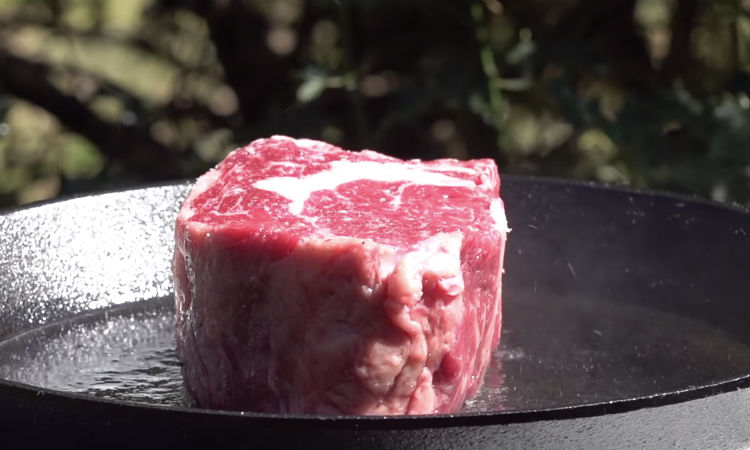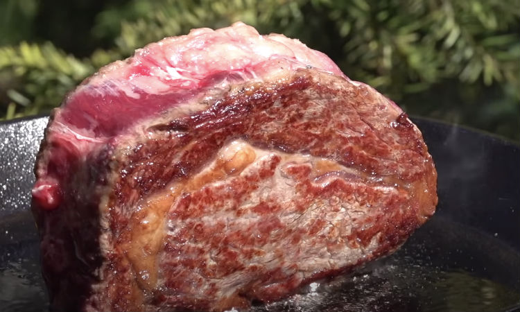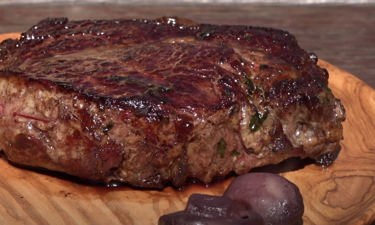 В результате получится стейк Medium— при разрезе примерно 20% мяса будет иметь светло-розовый цвет, температура внутри мяса будет 62 градуса.