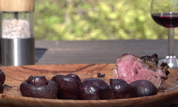 Это блюдо не требует больше никакого гарнира. Сочетание стейка и грибов по-бургундски и без того получилось идеальным.