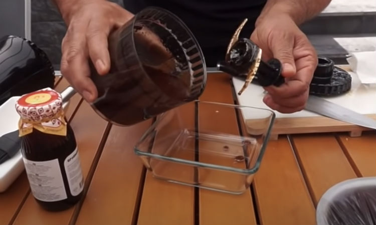 Переходим к самому шашлыку. Нанизываем на шампуры, ставим на мангал. И прямо в процессе жарки наносим на каждый кусочек (удобно воспользоваться кондитерской кисточкой) приготовленный заранее соус. Он и даст весь вкус шашлыку, карамелизует корочку и оставит весь сок внутри.