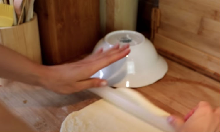 Замешиваем тесто из указанных выше ингредиентов. Делим его на две части, каждую раскатываем в плоскую лепешку. В видеорецепте ниже фарш не используется, но мы рекомендуем добавить в начинку и его вместе с беконом и ветчиной — так просто будет вкуснее.