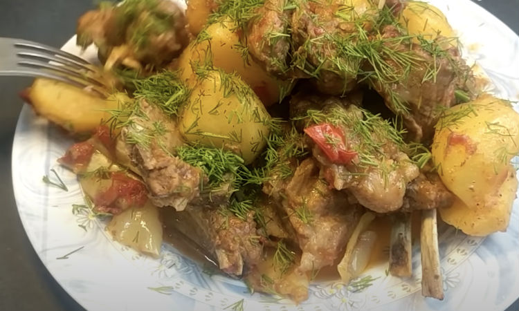 На одной сковороде получился полноценный ужин, а мясо стало нежным и очень вкусным.