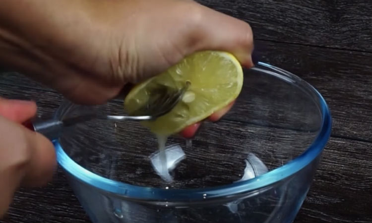 Как раз есть время заняться лимонами. Режем их пополам и вилкой выдавливаем сок в удобную миску. Если в сок попали косточки, удалите их ситечком.