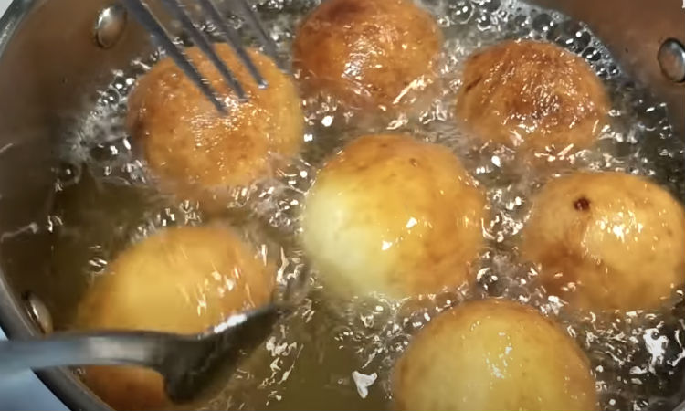 Осталось только обжарить шарики в кипящем масле до золотистого цвета.