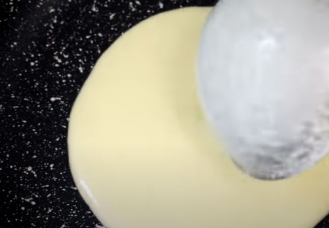 Разогреваем сковороду и порционно выливаем на нее тесто.