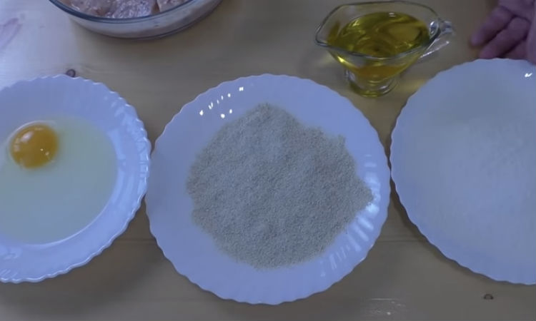 Затем панируем сначала в муке, следом в яйце со щепоткой соли и сухарях.