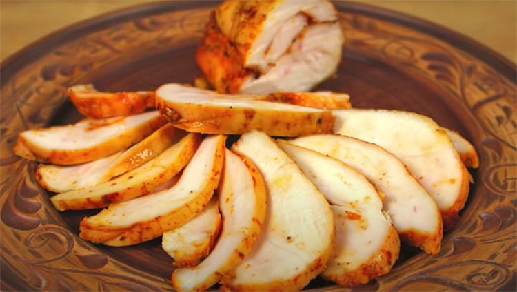 Дальше все просто – нужно запечь мясо в духовке и дать остыть. На этом куриный рулет готов!