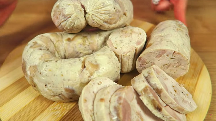 В результате получается натуральная куриная колбаса, которая идеально подходит к утренним бутербродам.