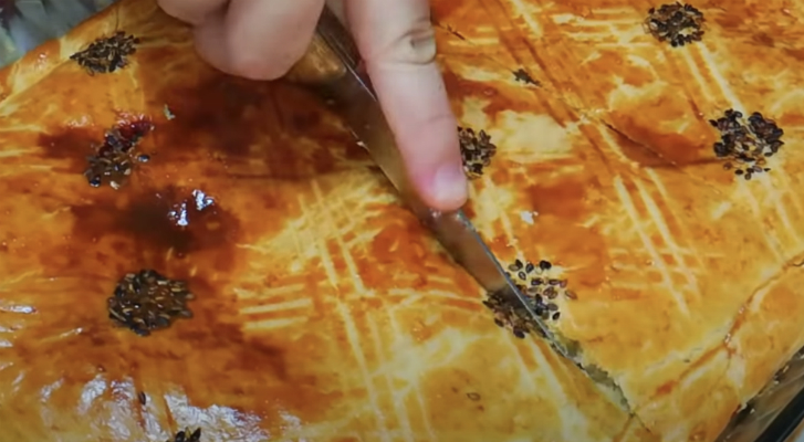 Пирог получился сочнее обычного, поскольку весь сок от мяса остался внутри.