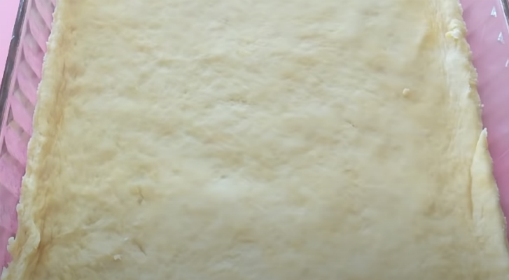 Достаем тесто, раскатываем его тонко и раскладываем в форму, формируя бортики. Сверху кладем начинку и закрываем еще одним пластом теста.