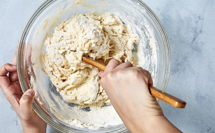 Вымешивайте тесто пока оно не перестанет прилипать к рукам и стенкам миске. Тесто получится мягкое, не слишком плотное и эластичное.