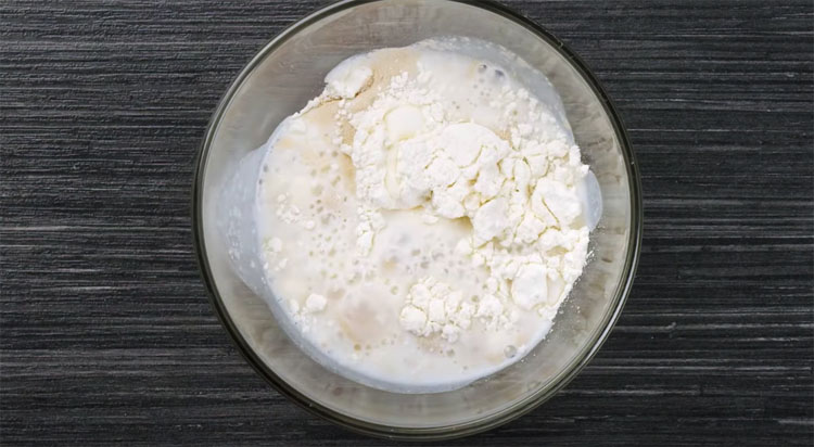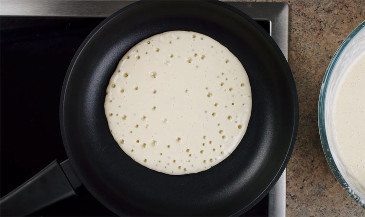 Блины почти не отличаются от привычных нам. Для теста нам понадобятся дрожжи, сахар, молоко, мука, вода, соль, разрыхлитель, сливочное масло. Здесь есть небольшая особенность замешивания теста – молоко в него добавляют 2 раза. Сначала на этапе смешивания ингредиентов, а потом уже на этапе финального замешивания, смешивая с теплой водой и добавляя муку. Детали замешиввания доступны в видео ниже.