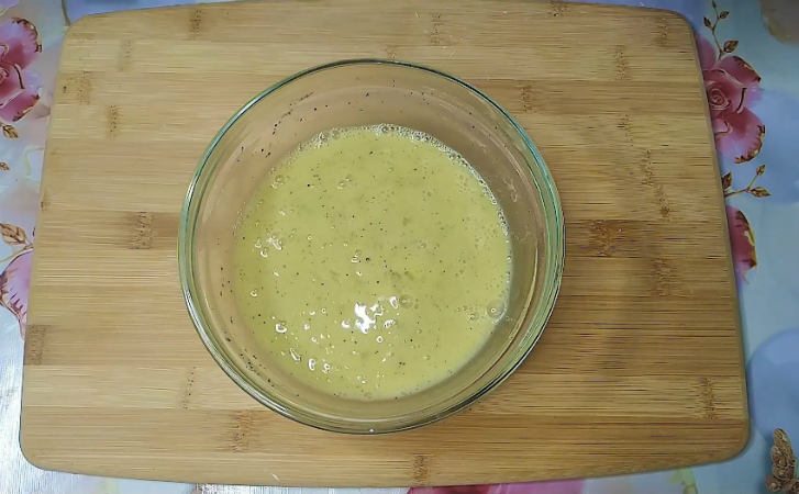 Теперь в отдельную миску разбиваем яйца, вливаем к ним молоко, добавляем соль и черный перец. Венчиком взбиваем до однородной массы, а затем высыпаем в нее также нарезанную тонкой и короткой соломкой колбасу.