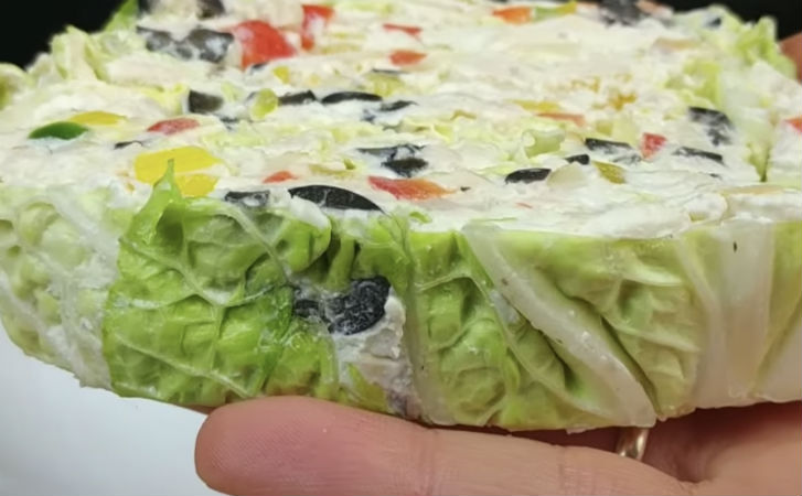 Начинку для этого салата можно делать абсолютно любой. Из одного кочана пекинской капусты при желании удобно сделать два совершенно разных салата, каждый из которых наверняка станет хитом на праздничном столе.