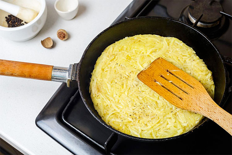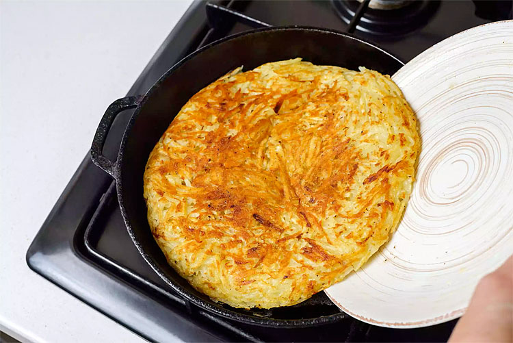 Из одной картофелины получается один хашбраун на всю сковороду. 3-4 картошки и завтрак на всю семью готов.