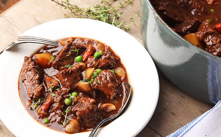 Подавать приготовленное таким образом мясо будет вкуснее всего с нежным пюре или белым рисом.