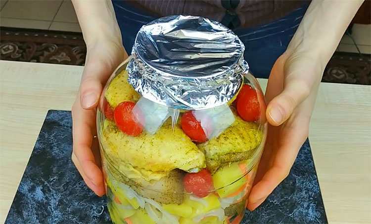 Готовится практически без участия — духовка делает всё сама, а в банке продукты пропитываются соками и ароматами друг друга.