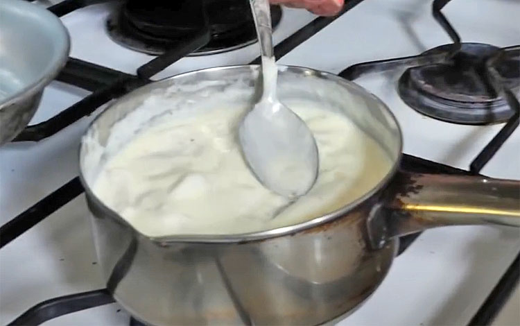 Через пару минут пора наливать молоко. Вводим его постепенно, постоянно перемешивая. На последнем этапе приправляем еще немного специями и оставляем минуты на 2-3 вариться, помешивая и предотвращая образование комков.