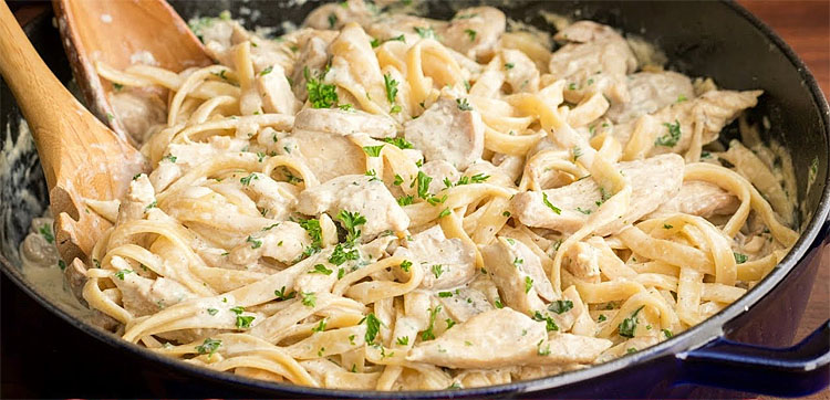 На первый взгляд сочетание курицы и макарон может показаться непривычным, но на самом деле — это классика. Паста Альфредо, известная во многих ресторанах, — одно из самых популярных и вкусных блюд с курицей. Основные ингредиенты — куриное филе, обжаренные грибы и сливочный соус. Добавьте сюда пасту, и ужин для всей семьи готов!