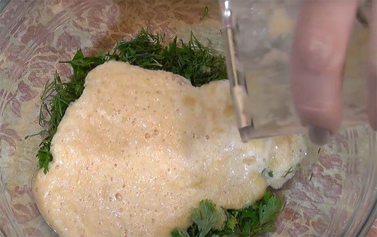 1. Моем, мелко нарезаем и перекладываем в глубокую тарелку петрушку и укроп.