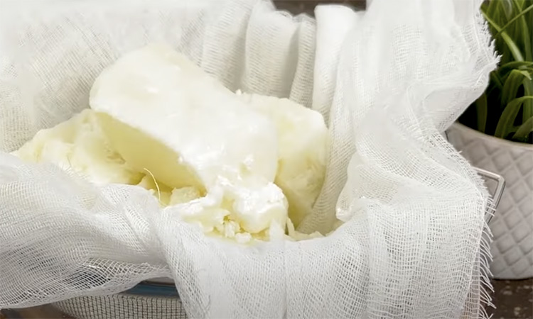 Рецепт предельно прост. Кефир замораживаем, затем перекладываем в застеленный марлей дуршлаг. Оборачиваем марлю вокруг бруска, оставляем кефир под прессом. Через два часа вся сыворотка стечет и в марле останется вместо кефира почти готовый сыр.