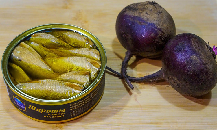 Приготовление классической селедки под шубой потребует не меньше половины вечера на кухне, причем результат не обязательно порадует — этот салат склонен размокать. Вместо него всего за 10 минут (после подготовительного этапа) можно приготовить намного более вкусный и уж точно более простой салат: в его основе обычные шпроты и немного свеклы.