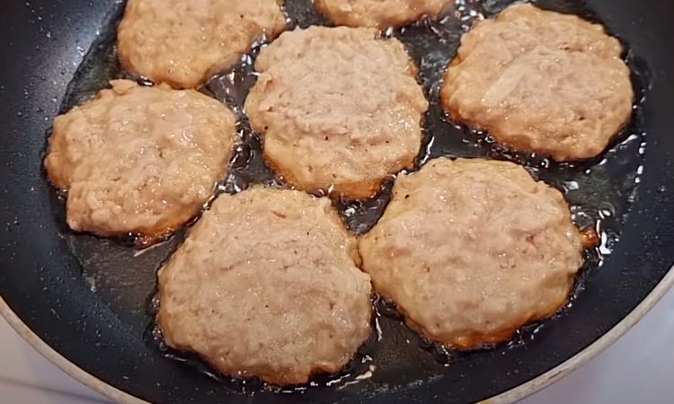 3. Разогрейте сковороду с небольшим колличеством масла на среднем огне. Выкладывайте смесь на сковороду порционно, формируя котлеты. Размер и форму котлет можно выбирать по своему усмотрению. Жарьте котлеты с обеих сторон до появления золотистой корки и полной готовности мяса внутри. Это обычно занимает около 4-5 минут с каждой стороны, но время может варьироваться в зависимости от размера котлет.