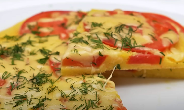 Натрите сыр, укроп мелко нарежьте, помидор нарежьте кружочками. Смешайте манку, яйца, соль и перец. Вылейте на смазанную маслом сковороду, выложите сверху помидоры и сыр, накройте крышкой и готовьте 3 минуты на маленьком огне.