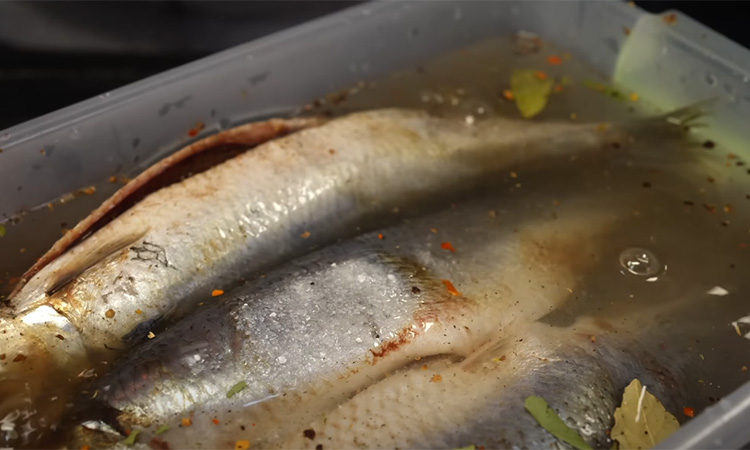 1. Если рыба мороженая — полностью разморозьте ее при комнатной температуре или в холодильнике. Очистите рыбу изнутри: аккуратно удалите внутренности, но головы и хвосты можно оставить — это придаст рассолу дополнительный аромат. Промойте каждую тушку под холодной проточной водой. Выложите сельдь в глубокую миску или кастрюлю, чтобы было удобно посыпать специями.