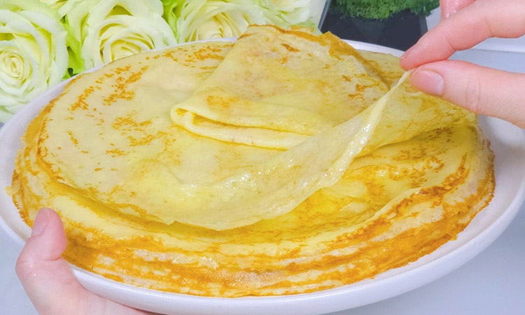 Выливайте тесто тонким слоем и жарьте на огне выше среднего до румяности краев, затем аккуратно переворачивайте лопаткой.
