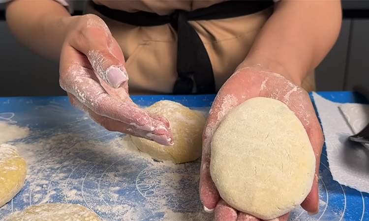 Очистите картофель от кожуры и отварите в несоленой воде до полной готовности. Слейте воду через дуршлаг, дайте лишней влаге полностью испариться, затем разомните картофель толкушкой в однородное пюре. Посолите остывшее пюре по вкусу, добавьте специи, разбейте в него яйцо и перемешайте. Всыпьте немного муки и замесите ложкой густое и пластичное тесто, которое должно слегка липнуть к рукам.