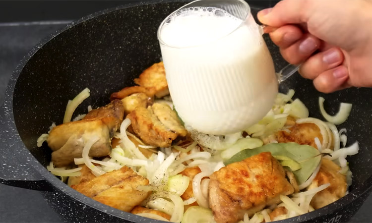 Длительное томление в молоке превращает лук в густой соус, который полностью меняет вкус рыбы, делая его благородным и сливочным.