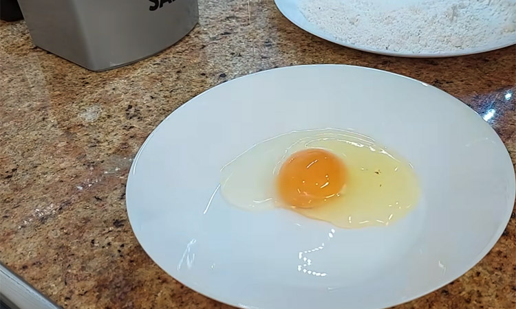 Очистите говяжью печень от пленок и сосудов, промойте и нарежьте на средние порционные кусочки. Смешайте в тарелке пшеничную и рисовую муку, добавьте соль и черный молотый перец по вкусу. В отдельной миске хорошо взбейте яйцо вилкой до однородного состояния, чтобы белок и желток полностью соединились.