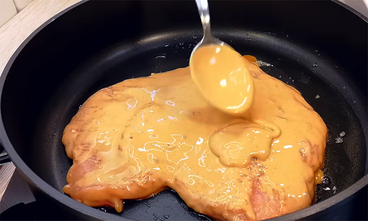 Куриные отбивные лучше всего готовить большими: так мясо не теряет сочности и получается нежнее обычного. Длительное маринование в специальной смеси на основе сметаны и горчицы размягчит волокна — тот же маринад послужит одновременно и кляром, который запечатает внутри все соки. Мясо получится невероятно нежным, одной такой отбивной вполне хватит на несколько порций.