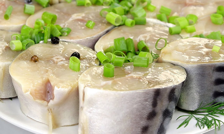 Залейте рыбу полностью остывшим рассолом так, чтобы все куски были скрыты под жидкостью. Накройте емкость крышкой и уберите в холодильник на одни сутки.