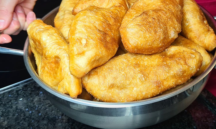 Плотно защипните края и обжаривайте пирожки в большом количестве раскаленного масла до румяности с обеих сторон.