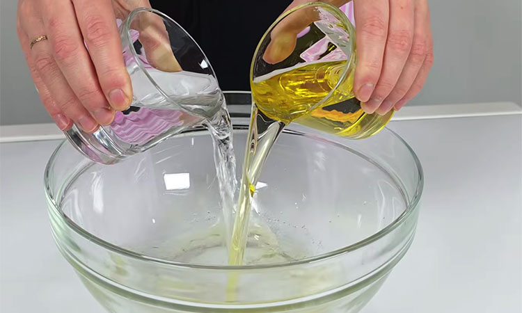 В глубокой миске соедините теплую воду, растительное масло, соль, сахар и уксус. Перемешайте венчиком и начните порционно всыпать просеянную муку. Замесите мягкое, похожее на пластилин тесто — оно должно стать однородным и полностью перестать липнуть к рукам всего за пару минут вымешивания. Обязательно дайте ему отдохнуть под пленкой 20–30 минут, чтобы оно стало максимально эластичным. Пока тесто отдыхает, приготовьте начинку.