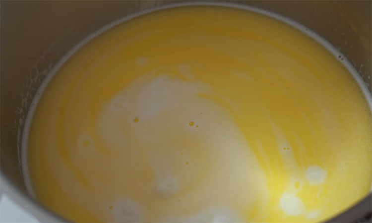 Начните с создания заварной основы, соединив в сотейнике воду, молоко, сливочное масло, соль и сахар. Доведите смесь до момента закипания на умеренном огне, после чего сразу снимите с плиты и всыпьте всю муку разом, интенсивно вымешивая массу лопаткой до полной однородности. Верните сотейник на огонь и прогревайте тесто еще около двух минут при постоянном перемешивании, пока на дне не образуется тонкая мучная пленка, свидетельствующая о готовности базы.