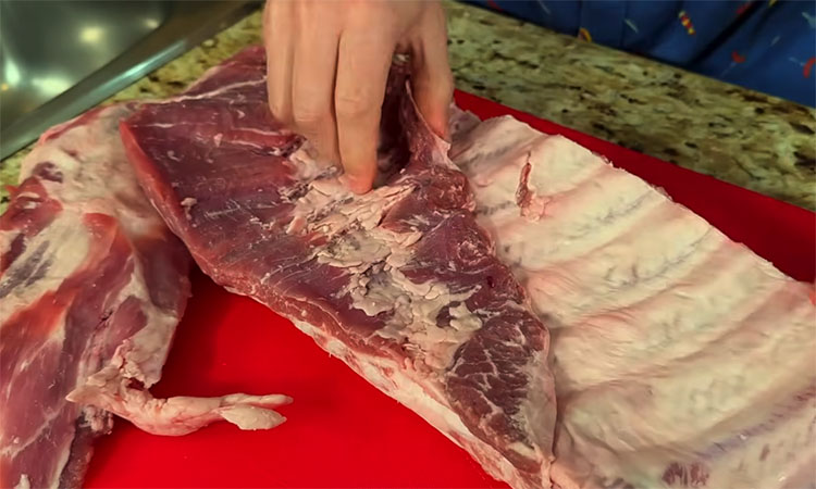 Начните с подготовки мяса: обязательно снимите жесткую пленку с внутренней стороны ребер, поддев её ложкой и потянув за край с помощью бумажного полотенца. Срежьте лишний жир и, если пластина не помещается на противень, разрежьте её пополам, но не делите на отдельные ребра — так мясо сохранит больше сока. Подготовьте ароматную смесь: мелко порубите головку чеснока и свежий розмарин, добавьте натертую цедру одного лимона.