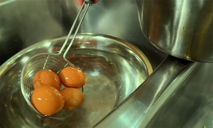 Опустите яйца в кипящую подсоленную воду и варите ровно 9 минут — это обеспечит идеальный кремовый желток. Сразу после варки переложите их в ледяную воду для легкой очистки. Параллельно отварите макароны в хорошо соленой воде до состояния почти полной готовности (чуть дольше, чем аль-денте). За одну минуту до конца варки макарон всыпьте в кастрюлю замороженный горошек для бланшировки. Слейте воду и обязательно промойте макароны с горошком под холодной проточной водой, чтобы остановить процесс приготовления и остудить продукты.