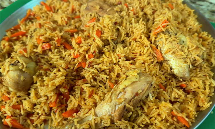 Дайте курице прокипеть в этом бульоне около 10 минут на среднем огне, чтобы мясо на косточке точно приготовилось. Промойте рис басмати 3–4 раза до прозрачной воды и дайте ей стечь. Всыпьте рис в сковороду, равномерно распределяя его между кусочками курицы. Плотно накройте сковороду фольгой и крышкой. Вы можете довести блюдо до готовности на минимальном огне на плите или отправить в духовку при 180°C на 20–25 минут.