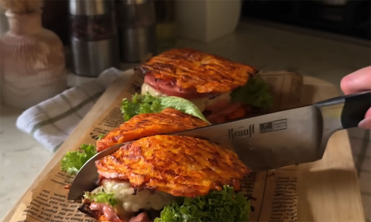 Приготовить привычный бургер можно и так, чтобы он вписался в любую диету. Просто нужно убрать из него самое вредное и калорийное, муку и само тесто. Вместо них даже вкуснее будет взять особенные лепешки из моркови и сыра: сочетание нежного куриного филе, расплавленного сыра и пикантного соуса на йогурте делает вкус максимально близким к классическому фастфуду, но без лишних углеводов и тяжести в животе.