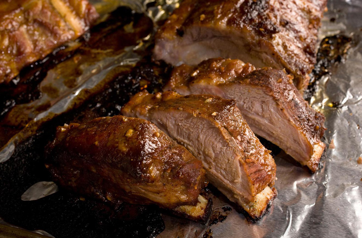 4. Запекайте ребра около часа, затем снимите фольгу и готовьте еще час, пока мясо не начнет легко отделяться от кости ножом. -
