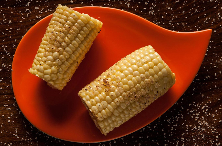 6. Обваляйте кукурузные початки в оливковом масле и посыпьте томатной солью. -