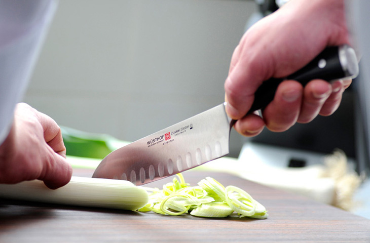 Специализированные ножи шеф-повара часто выполняются в больших пропорциях, нежели обычные. Это довольно неудобное качество для рядового пользователя или для обладателя скромного телосложения. Wusthof Santoku выполнен в несколько уменьшенной, но классической форме. Лезвие из высокоуглеродистой стали переживет вас, так что не стоит беспокоиться о его сохранности. Тесак идеален для измельчения мяса и овощей. И не бойтесь, что кто-нибудь посмеется над размером вашего ножа. Как говорится: кто смеется над ножом, тот не смеет смеяться над его хозяином! Стоимость — чуть более 100$.