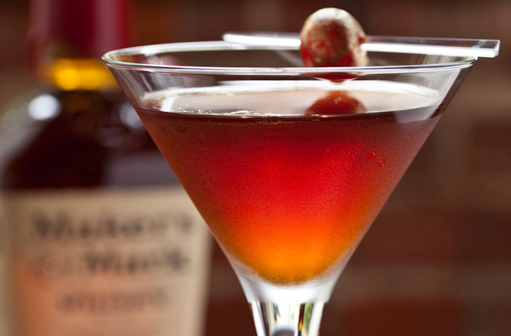 Ангостура - 5 капельПриготовление: смешать все ингредиенты в смесительном стакане со льдом, отфильтровать в охлажденный коктейльный бокал, украсить вишней.
