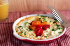 Разогрейте духовку. Столовую ложку масла растопите на среднем огне, добавьте лук и обжарьте до мягкости. В средней миске взбейте яйца со сливками. Добавьте соль, сыр и специи. Вылейте в заранее подготовленную форму и запекайте около 40 минут.