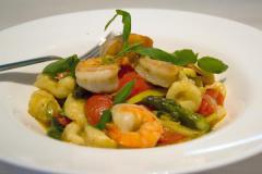 Отварить ньокки в соленой кипящей воде до тех пор, пока они не всплывут. Слить воду через дуршлаг. Выложить ньокки в сковороду с соусом и готовить еще 2 мин, для того, чтобы ньокки пропитались соусом.
