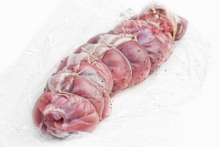 При правильно подобранной температуре запекания мясо, связанное кулинарной бечевкой, максимально сохраняет свой вкус и сочность.