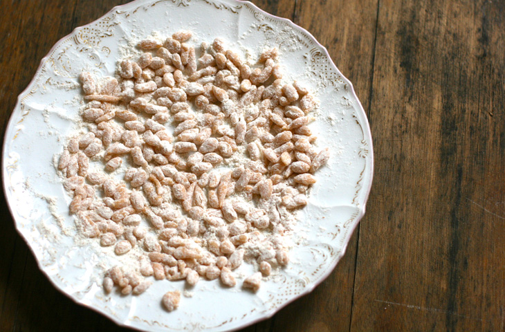Взбить маленькое яйцо, добавить щепотку соли и столько муки, сколько нужно, чтобы замесить крутое тесто. Из теста скатать колбаски толщиной в сантиметр и порвать их на маленькие кусочки. 5 минут в кипящем гуляше будет достаточно, чтобы они приготовились.