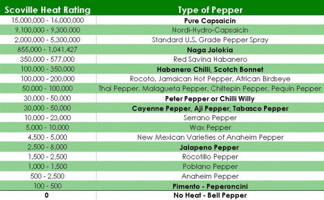 Сковиллом и его последователями опытным путем были получены значения остроты для основных сортов перца и в итоге таблица Сковилла выглядит сейчас именно так.
